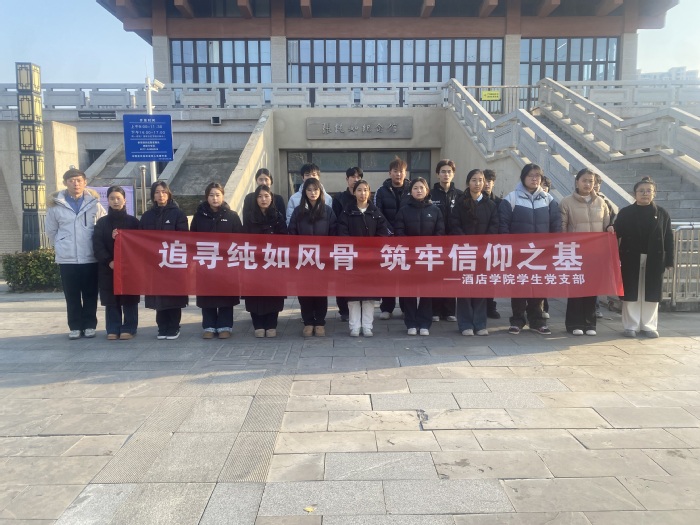 在第十二個國家公祭日來臨之際,為銘記歷史、緬懷先烈,筑牢青年黨員理想信念,12月4日,酒店學院學生黨支部組織黨員和入黨積極分子前往張純?nèi)缂o念館,開展以“追尋純?nèi)顼L骨,筑牢信仰之基”為主題的教育活動。活動由黨支部書記陳月帶隊,邀請理論導師李鑫共同參與,通過實境課堂深化愛國主義教育,引導青年學子從歷史中汲取奮進力量。